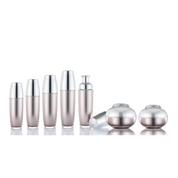 50ml Double wall jar with crystal clear acrylic outer base, white PP inner cup with spray color finish, anodized shiny silver cap, F-217 liner assemble.